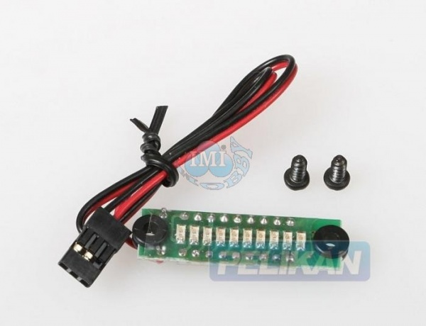 Miniaturní sloupcové indikátory napětí s expandovanou stupnicí do modelu. Připojují se do volného výstupu přijímače. Hmotnost 5 g. |
