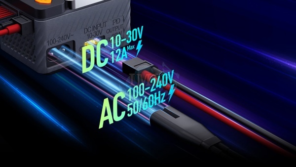 Vstupné napájacie napätie 10 – 30 V jednosmerných (pre plné využitie výkonu nabíjača by mal napájací zdroj poskytovať napätie aspoň 24 V) pri napájaní z akumulátora alebo sieťového stabilizovaného zdroja Sieťové napájanie 100-240 V/50-60 Hz Na nabíjanie a vybíjanie 1 – 15 NiCd/NiMH článkov, 1 – 6 Li-ion/Li-poly/Li-Fe/LiHV článkov alebo 6/12 V olovených akumulátorov s kvapalným elektrolytom a bezúdržbových AGM Nastaviteľný nabíjací prúd 0,2 A – 10,0 A Nastaviteľný vybíjací prúd (0,1 A – 2,0 A) Max. výkon na nabíjanie 200 W pri napájaní z externého sieťového zdroja či autobatérie alebo 60 W pri napájaní zo vstavaného sieťového zdroja Max. výkon na vybíjanie 5 W Ukončenie nabíjania pomocou automatiky delta-peak pre NiCd a NiMH akumulátory Lítiové a Pb akumulátory sú nabíjané metódou „konštantný prúd/konštantné napätie“ Nastaviteľná citlivosť delta-peak detekcie pre NiCd a NiMH akumulátory Nastaviteľné koncové napätie pre nabíjanie a vybíjanie pre lítiové akumulátory Opakovaná cyklická prevádzka nabíjania/vybíjania alebo vybíjania/nabíjania pre NiCd a NiMH akumulátory, až 3 cykly Tri nabíjacie režimy pre lítiové akumulátory - normálne nabíjanie, nabíjanie s dôrazom na balansovanie a skladovacie nabíjanie/vybíjanie Tri nabíjacie režimy pre olovené akumulátory – pre normálne olovené „autobatérie“, pre olovené AGM akumulátory (akumulátory s elektródami oddeleným separátorom zo sklených vlákien napustených elektrolytom) a pre nabíjanie olovených akumulátorov pri nízkych telotách (-20°C). Ukončenie nabíjania pri prekročení nastaveného času alebo dodaného náboja Meranie celkového napätia sady a jednotlivých článkov (pre lítiové akumulátory) Meranie celkového vnútorného odporu sady a jednotlivých článkov (pre lítiové akumulátory) Režim stabilizovaného sieťového zdroja s nastaviteľným napätím a prúdovým obmedzením 2-27 V/1-10 A, max. 60W pri sieťovom napájaní/max. 200W pri napájaní z externého zdroja Napájací/nabíjací výstup USB C pre mobilné zariadenia: QC3.0: 5 V/3 A, 9 V/2 A, 12 V/1,5 A (max. 18 W)/PD: 5 V/3 A, 9 V /3 A, 12 V/3 A, 20 V/3,25 A (max. 65 W) USB-C port pre aktualizáciu firmvéru nabíjača Podsvietený LCD displej s jednoduchým a prehľadným menu a zobrazovaním parametrov počas nabíjania/vybíjania K bezpečnej prevádzke prispieva rad varovných textových hlásení – nesprávne vstupné napätie, zlé zapojenie, nevhodný akumulátor alebo jeho stav, nesprávna polarita na výstupe atď. Ochrana proti prepólovaniu a skratu na výstupe. Ventilátor na nútené chladenie. Kompaktná plastová skrinka, miniatúrne rozmery Nabíjač je vybavený výstupnou zásuvkou XT60 a univerzálnou zásuvkou pre servisné konektory JST-XH umožňujúci priamo zapojiť silové káble akumulátora a servisné konektory JST-XH sad 2-6S – ak používate sady s konektormi XT60 a JST-XH, zaobídete sa úplne bez nabíjacích káblov a adaptérov. Na pripojenie servisných konektorov iných systémov môžete použiť štandardné adaptéry Sky RC alebo RC System.