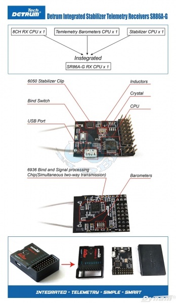 - Prijímač bezpečnostného systému autopilota SR86A-G pre 8C, DT9 (GPS, návrat domov, návratové dáta)