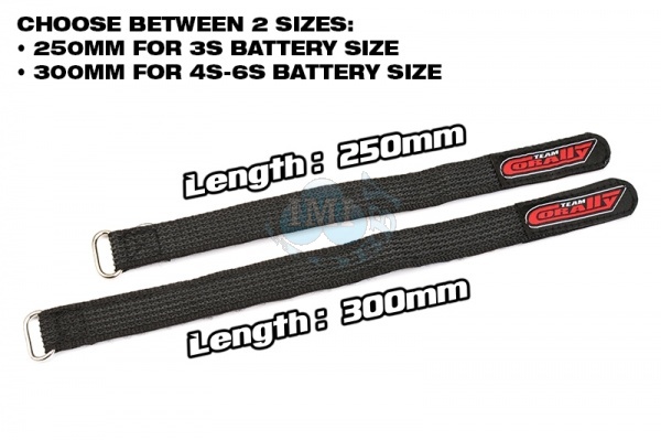 Sťahovacie pásky pre 3S Lipo, kovové očká, potiahnuté silikónom proti sklzu. Na ponuke vo dvoch dĺžkach. V balení sú 2 ks. |
