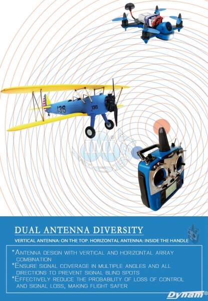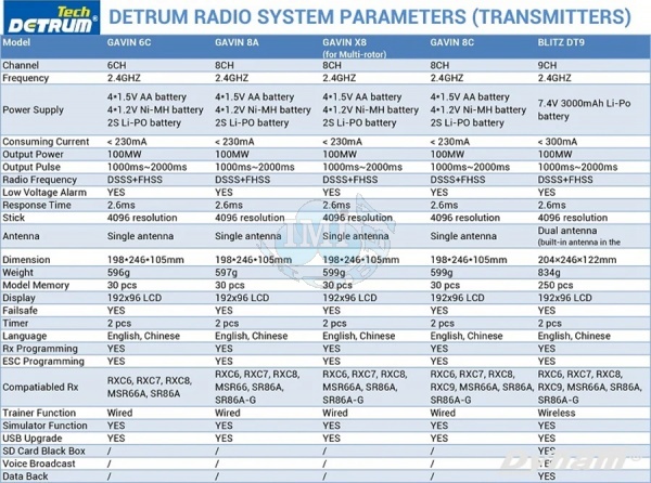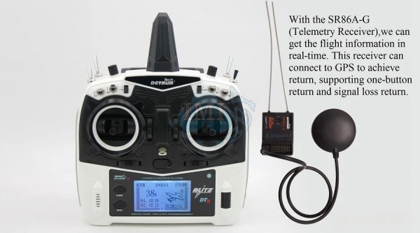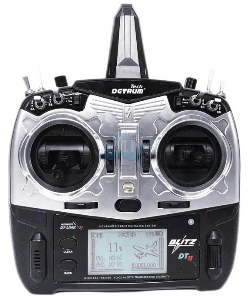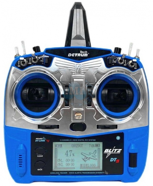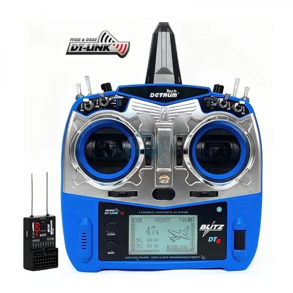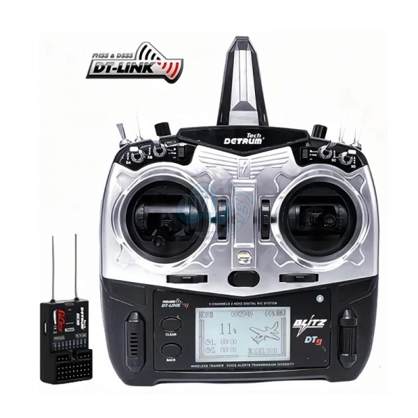 Jednoduchý a výkonný, Detrum Blitz DT9 je 2,4 GHz 9-kanálový inteligentný vysielač s telemetrickými a programovacími funkciami. S jedným vysielačom môžete prevziať plnú kontrolu nad lietaním zo všetkých aspektov, či už ide o nastavenie ESC, programovanie gyroskopického prijímača, BNP s rôznymi typmi prijímačov alebo bezdrôtový tréning. S plnou telemetrickou funkciou dokáže blitz DT9 prijímať údaje o teplote, nadmorskej výške, GPS, napätí, prúde a telemetrii, aby ste boli viac spojení s lietaním ako kedykoľvek predtým. Blitz DT9 tiež funguje so všetkými stabilizovanými prijímačmi Detrum a spätne prenáša telemetrické údaje.