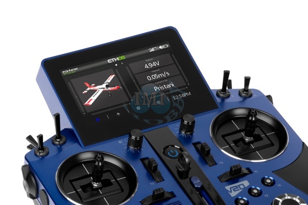 Prenosový systém: 2,4 GHz simultánny na dvoch frekvenciách Anténa: dve vstavané antény Rozmery: 221,5×214,5×94 mm (Š×V×H) Hmotnosť: 1027 g (vrátane akumulátora) Operačný systém: ETHOS™ Vnútorný VF modul: TW-ISRM Počet kanálov: až 24 Rozsah prevádzkového napätia: 6,5–8,4 V (2S LiPo akumulátor) Prevádzková teplota: (-10)–60 °C Prevádzkový prúd: 240 mA pri 7,4V Nabíjací prúd: ≤1 A ± 200 mA Napätie USB adaptéra: 5 V + 0,2 V Prúd USB adaptéra: >2,0 A Displej: Podsvietený dotykový LCD s rozlíšením 800×480 na 4,3" uhlopriečky Kompatibilita: Twin 2,4 GHz / ACCST D16 / ACCESS
